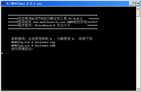 分解命令:Nb02Img.exe X Customer.NB0 (x是分解標(biāo)示符,后面是目標(biāo)文件)