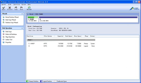 奧美分區(qū)助理專業(yè)版 Aomei Partition Assistant Professional Edition調(diào)整,移動(dòng),合并,拆分硬盤分區(qū)等等功能,面面俱到的硬盤分區(qū)軟件,支持多系統(tǒng),方便用戶輕松分區(qū).
