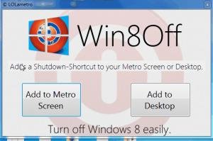 Win8Off已經(jīng)發(fā)展成為一個小而簡單的工具,管理關(guān)機(jī)的快捷方式添加到Windows8。