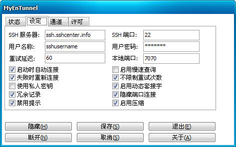 MyEnTunnel實際上是plink的GUI前端而已,可以避免記憶復(fù)雜的命令行,還可以安全的保存密碼。 很多人用MyEnTunnel做為windows下的ssh客戶端。