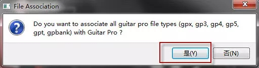 3、然后執(zhí)行Guitar Pro 6. 打開程序時(shí)會(huì)詢問是不是關(guān)聯(lián)所有Gtp文件,點(diǎn)擊是