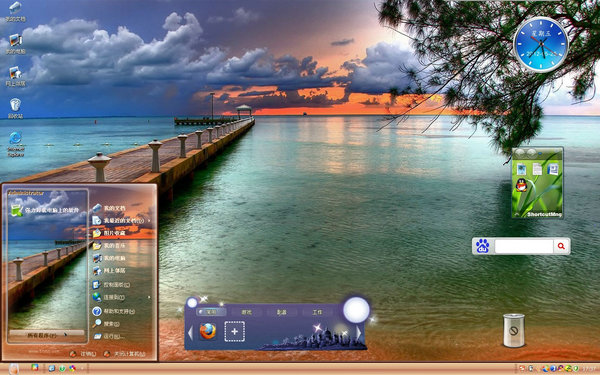 這款主題名為清涼海水,在這炎熱的天氣中,似乎只有水才能夠解熱氣,看著這款桌面主題中清涼涼的水和長(zhǎng)長(zhǎng)的渡頭,還有那天邊的晚霞和黑壓壓的云彩,似乎一場(chǎng)雨之后,又是嶄新的新天地了~