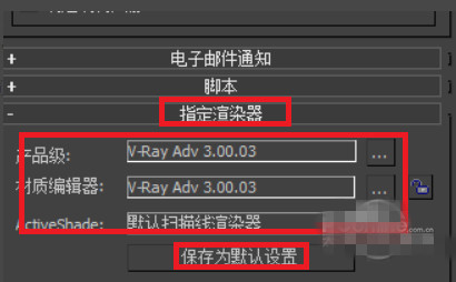 一、如何指定渲染器?1、進(jìn)入3d設(shè)置里,選擇V-Ray Adv 3.00.03 V-Ray Adv 3.00.03 默認(rèn)掃描線渲染器,具體如下圖。