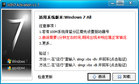 起點提供win7激活工具下載,win7激活工具采用一鍵式激活,激活后無OEM信息和GRUB啟動信息,和正版一樣,可以通過微軟正版驗證,可以自動更新。win7激活工具使用簡單,完全是一鍵WIN7激活,成功率極高,可以激活所有版本的Win7。