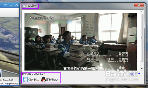 把“摳摳視頻秀”置于視頻窗口的前面,然后中間透明區(qū)域左上角對準(zhǔn)視頻播放器畫面的左上角,然后鼠標(biāo)按住“摳摳視頻秀”的右下角,然后拉動框子,使這個右下角對準(zhǔn)視頻畫面的右下角,如圖所示。