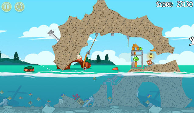 小鳥們的戰(zhàn)爭全線轉(zhuǎn)移,大家可以嘗試在水中射擊的新玩法。開發(fā)商加入了新的物理引擎,水中的小鳥將會(huì)借助浮力改變飛行軌跡,然后繞過障礙消滅那些綠豬。