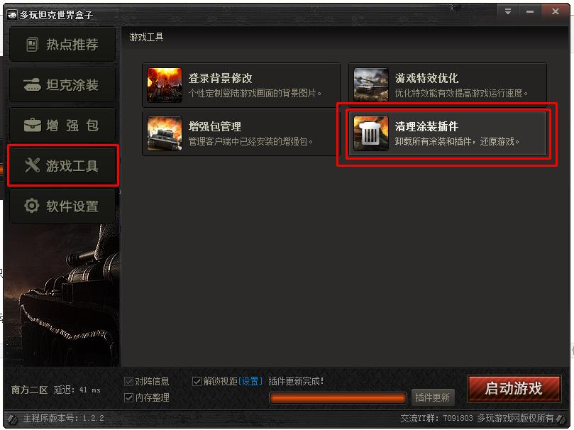 多玩坦克世界盒子主要是讓廣大不會(huì)手動(dòng)安裝插件,涂裝的玩家方便游戲開發(fā)的,對(duì)坦克世界盒子的使用有各種bug或者有好的想法、建議,可加入YY群反饋給我們,這里有坦克盒子的一手信息,讓我們一起打造大家喜愛的好產(chǎn)品。