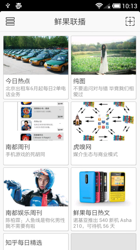 通過鮮果聯(lián)播你可以從數(shù)百萬的知名博客、社交網(wǎng)絡、新聞網(wǎng)站、報刊雜志中訂閱自己喜歡的內(nèi)容,同時鮮果聯(lián)播也是你的個性化社區(qū),你可以通過社區(qū)和微博與好友分享你的興趣列表、經(jīng)典文章、以及心得評論。
