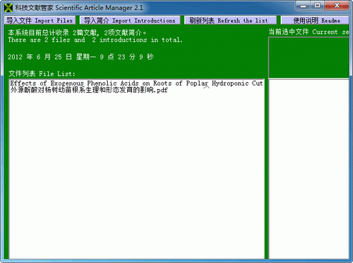 科技文獻(xiàn)管家 2.1 綠色免費(fèi)版 科技文獻(xiàn)管家 一款管理科技文獻(xiàn)、期刊論文、文件檔案的小巧免費(fèi)的軟件??萍嘉墨I(xiàn)管家主要功能是為文件添加外置簡介(文字備注),科技文獻(xiàn)管家不必打開原來的文件就可以快速調(diào)出簡介,從而回顧文件的內(nèi)容??萍嘉墨I(xiàn)管家支持為任何格式的文件創(chuàng)建簡介??萍嘉墨I(xiàn)管家軟件極其小巧,科技文獻(xiàn)管家實乃查閱文獻(xiàn)、撰寫論文的優(yōu)良的輔助軟件。