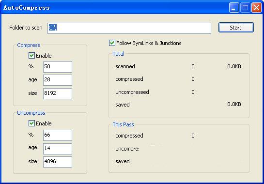 AutoCompress是一個小型應用程序,提供給用戶掃描特定的文件或文件夾的壓縮率。