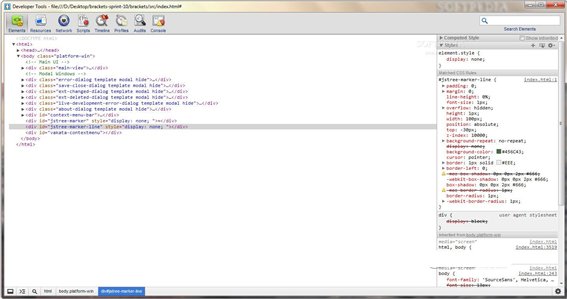 html代碼編輯器(Brackets Sprint) 是一個(gè)方便和可靠的實(shí)用工具,旨在幫助開(kāi)發(fā)人員在編輯CSS,HTML和JavaScript代碼。 html代碼編輯器允許你編輯CSS規(guī)則,腳本和分析網(wǎng)頁(yè)的性能集合。