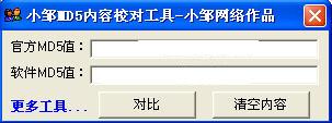 小鄒MD5內(nèi)容校對(duì)工具主要用于校對(duì)MD5值也就是說官方軟件發(fā)布出來之后MD5值部分不同這個(gè)時(shí)候可能被非法人士加入病毒,所以校對(duì)MD5值是非常有必要的,很方面 小巧的工具就能解決。