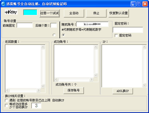 迅雷全自動注冊機是一款全自動注冊迅雷賬號的軟件,運氣好的話,可以注冊到一些連號或情侶號碼哦。軟件可以自定義賬號和密碼的前幾位,無需輸入驗證碼,全自動注冊!