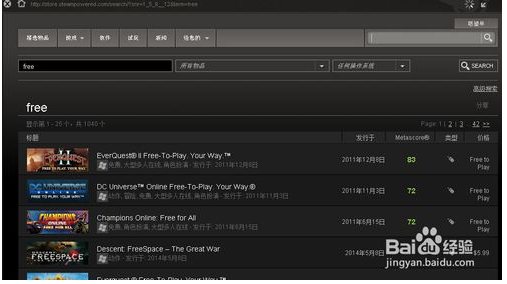 6、進(jìn)入搜索游戲,搜索free獲得免費(fèi)游戲列表,當(dāng)然你也可以搜索其他指定游戲