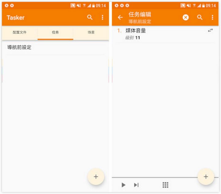 回到我前面的例子,我想要觸發(fā)的動(dòng)作是「開啟媒體音量」,于是我就在「任務(wù)」頁(yè)面右下角點(diǎn)擊「+」,加入「把媒體音量調(diào)整到 11」的動(dòng)作。