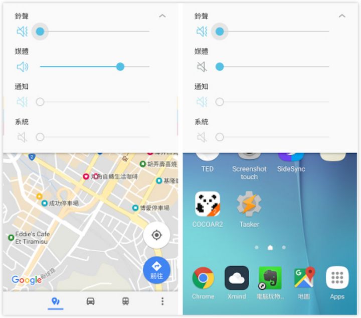 當(dāng)我在手機(jī)上打開 Google 地圖,媒體音量自動(dòng)調(diào)整到 11,讓我可以聽到導(dǎo)航語(yǔ)音。當(dāng)我跳出 Google 地圖,媒體音量自動(dòng)回到原本的靜音狀態(tài)。