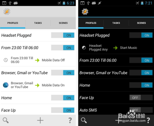 * “配置文件”(Profiles):- “配置文件”(Profiles)是Tasker里的核心