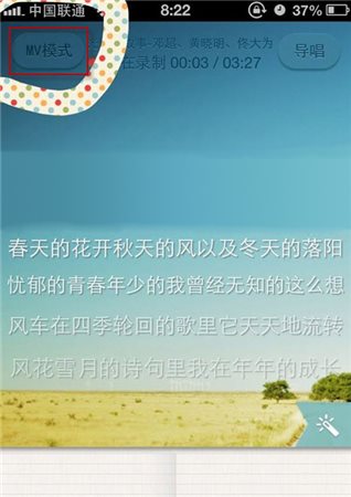 先更新唱吧版本到最新版,然后點擊麥克風按鈕,選擇歌曲開始錄制。一開始不是mv模式的,在屏幕左上角有一個按鈕是mv模式,點擊一下就可以錄制了。