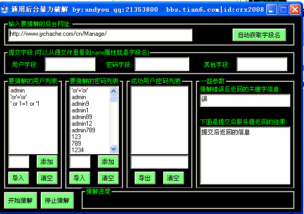 通用網(wǎng)站后臺破解器能暴力破解不同網(wǎng)站后臺,讓你不再為忘記后臺密碼而煩惱!