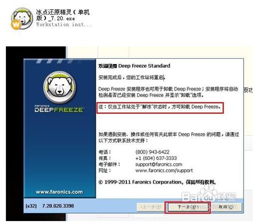 1、找到剛才下載的冰點還原精靈安裝程序打開進(jìn)行安裝,出現(xiàn)安裝界面,按圖示選擇“下一步”