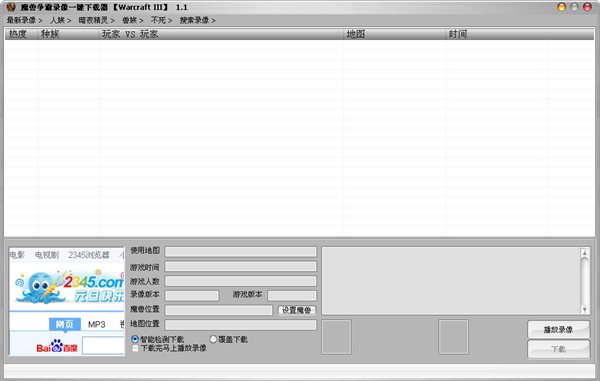 魔獸爭(zhēng)霸錄像一鍵下載器提供最新最全的魔獸3+dota錄像,實(shí)時(shí)更新,當(dāng)下載錄像時(shí),魔獸爭(zhēng)霸錄像一鍵下載器自動(dòng)下載對(duì)應(yīng)地圖。