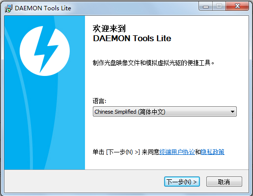 1、打開(kāi)下載的精靈虛擬光驅(qū)Daemon Tools中文版安裝包,選擇軟件語(yǔ)言。