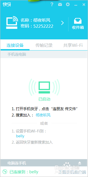當(dāng)然,我們還可以使用電腦主動(dòng)連接手機(jī)上的快牙。
