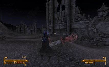 在《輻射》和《輻射2》的故事里,玩家冒險游歷的地區(qū)總是在美國西海岸,準確地說,在加州南部的某些荒原和小鎮(zhèn)里。黑島似乎并不急于向玩家展示核戰(zhàn)后的美國大都市的破敗場景。到了《輻射3》,大概是覺得破敗的鄉(xiāng)下景觀不足以展示核戰(zhàn)的殘酷,Bethesda不甘寂寞地將華盛頓特區(qū)炸了個底朝天,漏雨的杰斐遜紀念堂和被掀了蓋兒的五角大樓讓玩家高呼過癮。受此啟發(fā),酷愛西部風光的黑曜石也選定了本作要毀掉的大都市:以業(yè)聞名的罪惡之城拉斯維加斯。