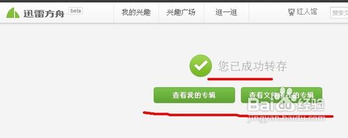 文件轉(zhuǎn)存成功后,彈出如下圖所示頁面,我們單擊“查看文件所在的專輯”