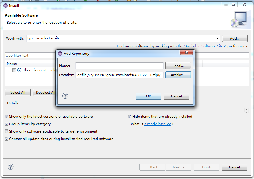 打開(kāi)Eclipse中的菜單 “Help”->”InstallNewSoftware”進(jìn)入軟件安裝界面,點(diǎn)擊“Add”按鈕。