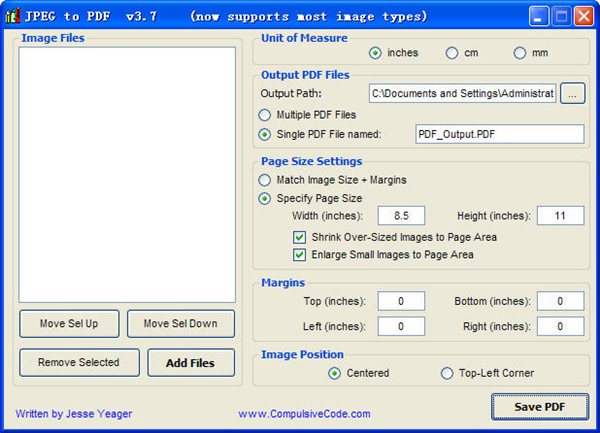 這是一個(gè)程序,用于將圖像文件轉(zhuǎn)換成PDF文件。該軟件支持轉(zhuǎn)換多個(gè)圖像文件到單個(gè)或多個(gè)PDF文件。