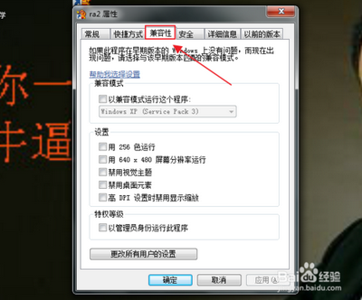 在打開的屬性窗口中,我們找到“兼容性”點擊它,如圖;