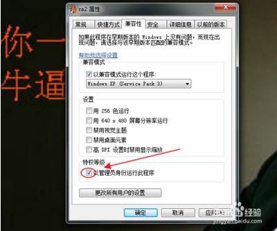 我們也可以設(shè)置一個一勞永逸的方法,右擊啟動圖標,點擊屬性,點擊“兼容性”選項卡,找到“特權(quán)等級”點擊“以管理員身份運行此程序”前面的小方框,點擊“確定”就OK了。如圖。