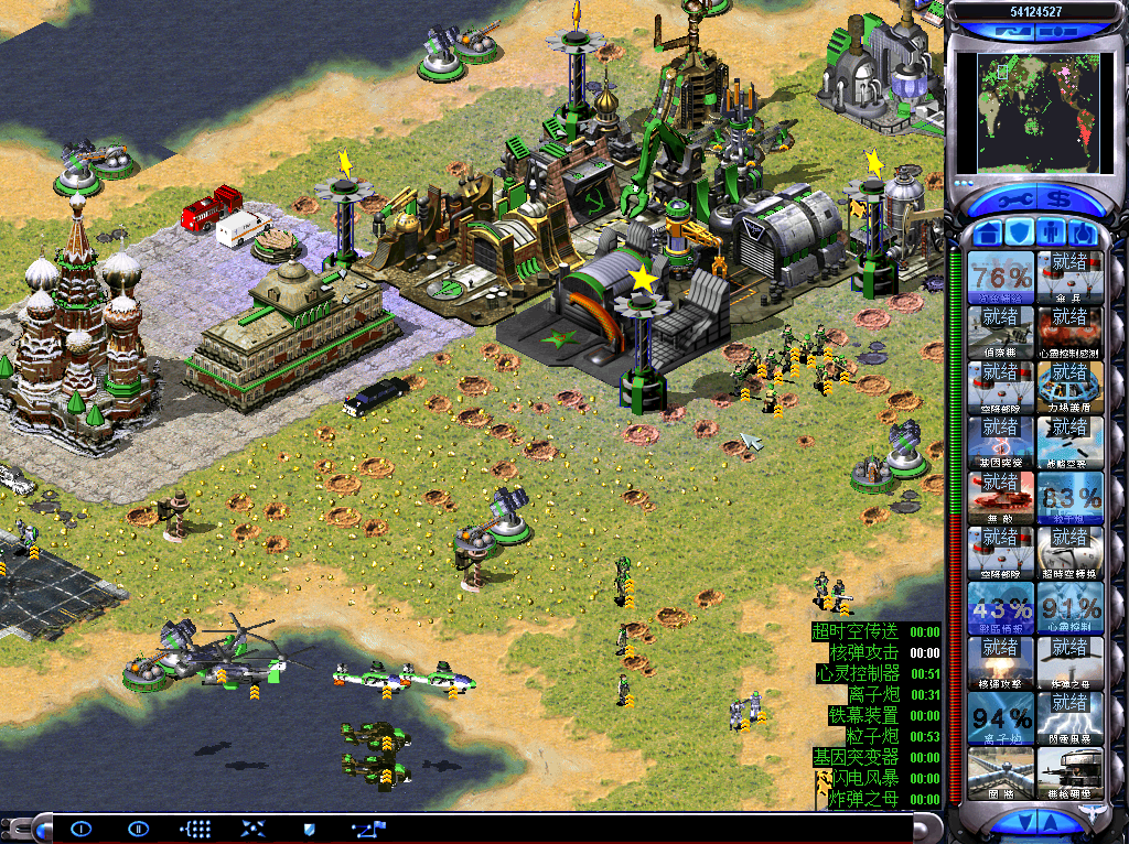 由于中國的加入:古巴被覆蓋了。制造古巴的恐怖分子只能使用中國并且占領(lǐng)蘇軍兵營。這樣你就同時擁有古巴恐怖分子,瘋狂依文,中國火箭車,虐待電腦吧。