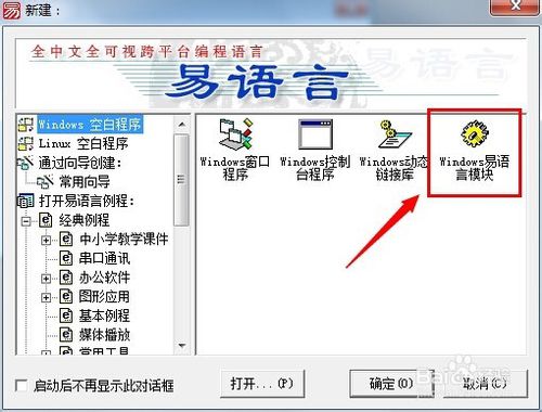 一、易語(yǔ)言編寫(xiě)模塊的操作步驟打開(kāi)易語(yǔ)言,選擇“程序”→ ”新建”→“Windows易語(yǔ)言模塊”→“確定”或者雙擊“Windows易語(yǔ)言模塊”都可以進(jìn)入模塊編寫(xiě)界面