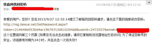 進(jìn)入郵箱,點擊鐵血網(wǎng)修改密碼郵件,并點擊修改密碼鏈接,跳轉(zhuǎn)到重置密碼頁面;