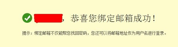 進(jìn)入完成郵箱綁定頁面,綁定完成后您可以使用郵箱登錄,也可使用郵箱找回密碼;