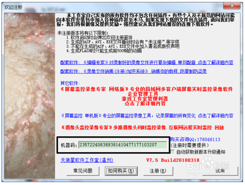 4.運(yùn)行軟件后會(huì)提示注冊(cè)(記住機(jī)器碼)