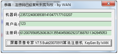 6.輸入機(jī)器碼跟用戶名,然后點(diǎn)擊按鈕即可獲得注冊(cè)碼