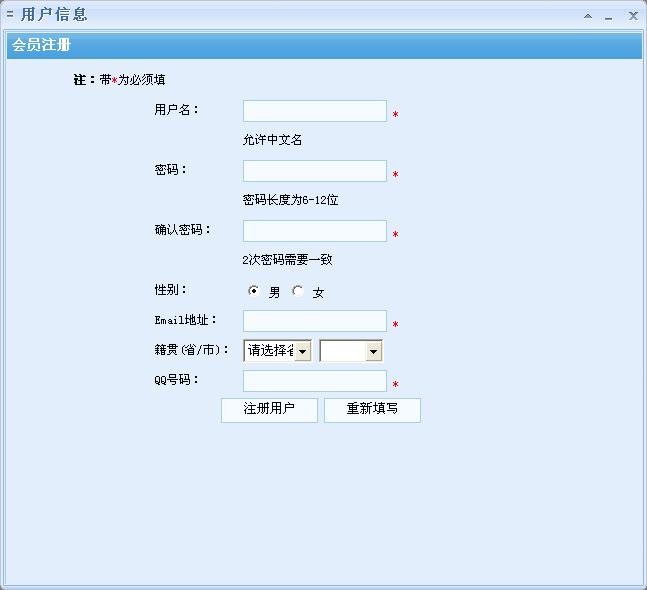 點擊“注冊新用戶”,可以打開注冊界面。如下圖所示: