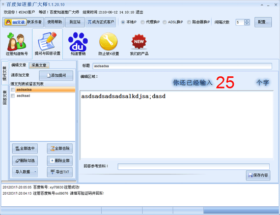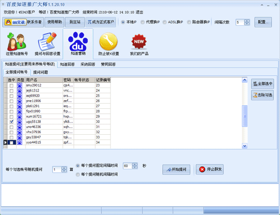 5、可以成百上千的管理知道帳號,大量養(yǎng)號;