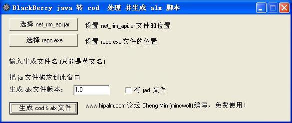 黑莓轉(zhuǎn)換工具可以直接把cod拖到軟件界面上,馬上生成一個alx文件。