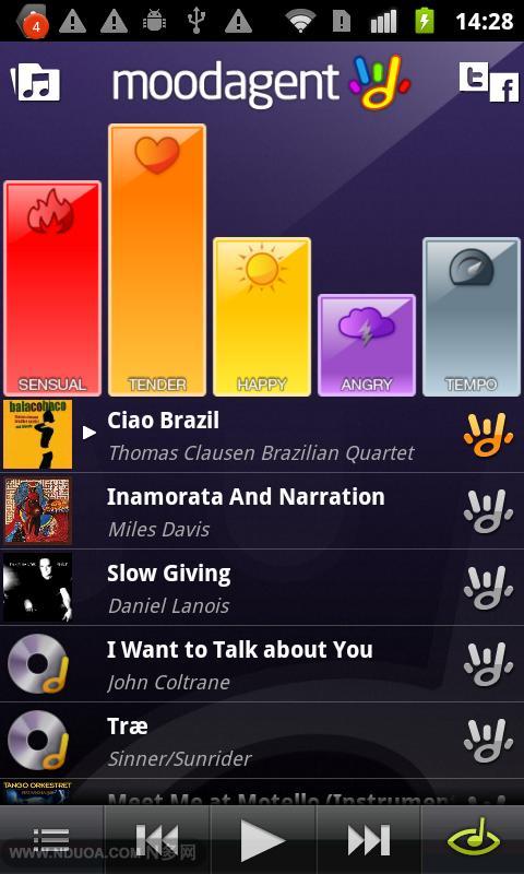 音樂心情是一款神奇的音樂軟件,它可以根據(jù)用戶的心情放出不同的音樂,用戶可調(diào)節(jié)音色、柔和、快樂、憤怒的程度,以及音樂速度。每次調(diào)節(jié)后,Moodagent將從您的全部合集中創(chuàng)建新的組合,為您呈現(xiàn)優(yōu)質(zhì)的播放列表,讓您找回遺忘的旋律。【軟件特點(diǎn)】