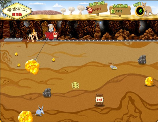 考驗(yàn)玩家的操作準(zhǔn)度,在有限的時(shí)間內(nèi),你要多多的抓金礦哦,完不成規(guī)定的限額,就無法過關(guān)啦。