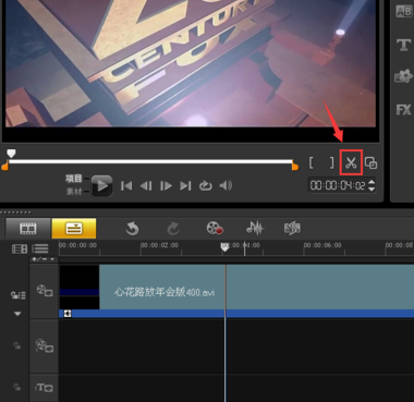 在需要剪輯的位置上,暫停播放,點擊剪刀圖標。