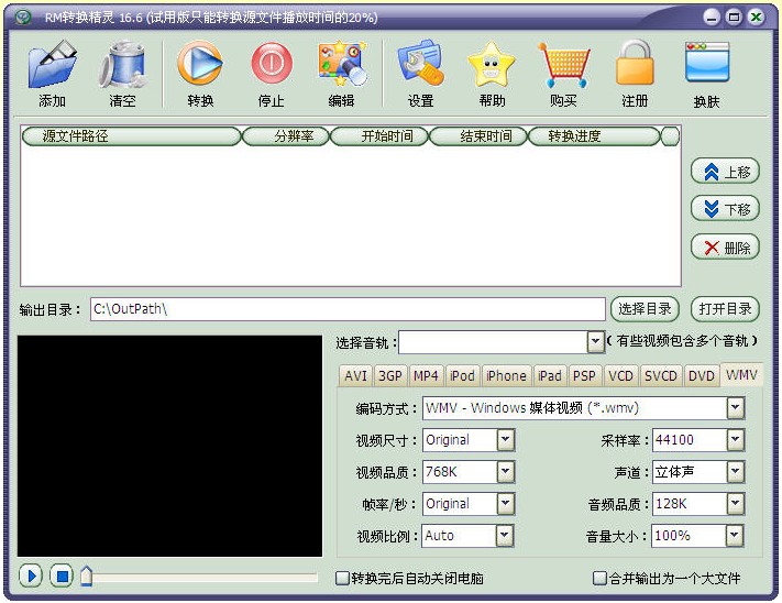 1、RM、RMVB轉(zhuǎn)換為AVI(DivX/XivD/MJpeg)、MPEG、VCD、SVCD、DVD、WMV;