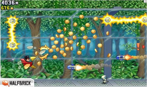 火箭飛人Jetpack Joyride是一款橫版酷跑游戲,游戲主角巴里(Barry)潛入了一座神秘的工廠,奪走了邪惡的科學(xué)家們正在研制的個人火箭飛行器,跟著他利用火箭飛行器逃離出這個神秘工廠吧。用飛行器上的機槍驅(qū)趕邪惡的科學(xué)家,上下飛行來避開工廠里各式各樣的障礙物,收集金幣,得到盡可能高的分數(shù)。火箭飛人安卓版也是一款畫面華麗的游戲,游戲節(jié)奏會隨著你活得的各種道具而發(fā)生變化,讓你在時快時慢的節(jié)奏中挑戰(zhàn)自己的反應(yīng)速度和決斷力。