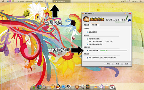 喜歡透明風格?那就開啟酷點桌面透明滑竿吧,自定義透明效果,想怎么透明就怎么透明,想多透明就有多透明。