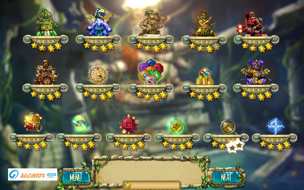 蒙特祖瑪?shù)膶毑?游戲中圖騰不再是僵硬的幾塊彩色石頭,而是活靈活現(xiàn)的“動作明星”,圖騰回報豐富,可幫助玩家獲得無數(shù)的連擊。基本上每一關(guān)都可以通過完成指定分數(shù)賺取一個金星獎勵,所有的嘉獎關(guān)均為消除所有屏幕中的磚塊。當(dāng)然游戲中更改最大的部分在于:游戲改為了一分鐘限時游戲,完成規(guī)定的總分從而得到金幣。