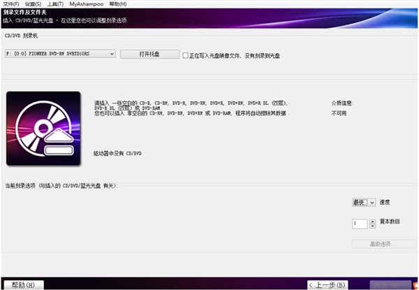 切換到“刻錄”設(shè)置選項,可選擇刻錄速度及刻錄方式等,如圖
